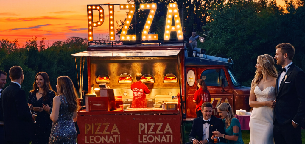 A Leonati Catering pizza truck creates both a catering solution and an experience. It provides freshly cooked food, fast service for large guest numbers, and a relaxed social atmosphere that fits perfectly with modern wedding celebrations.