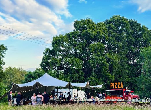 Stone House weddings offer a beautiful countryside setting with a relaxed atmosphere, making them ideal for interactive evening catering. A pizza truck creates a natural social focal point where guests can enjoy freshly cooked food throughout the reception rather than a traditional buffet service.