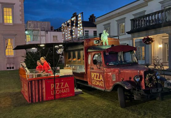 Planning your wedding at Stone House in Rushlake Green? Leonati provides wedding pizza truck and evening catering designed for countryside and private estate weddings. Our vintage style pizza trucks serve fresh, hand stretched pizzas cooked on site, giving your guests relaxed, high quality evening food that perfectly suits the character of Stone House celebrations.